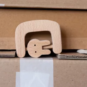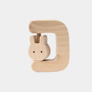 n hochet simple et universel, facile à attraper, avec un petit lapin mobile qui stimule la motricité. Fabriqué artisanalement dans le nord de la France, en bois brut non verni, il accompagne les tout-petits dès la naissance.