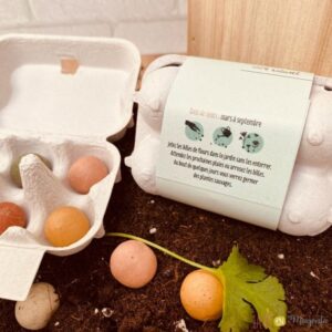 • Contenu de la boîte : Chaque boîte renferme six billes de fleurs prêtes à être plantées, permettant de créer un espace fleuri qui attirera papillons et abeilles, contribuant ainsi à la biodiversité.