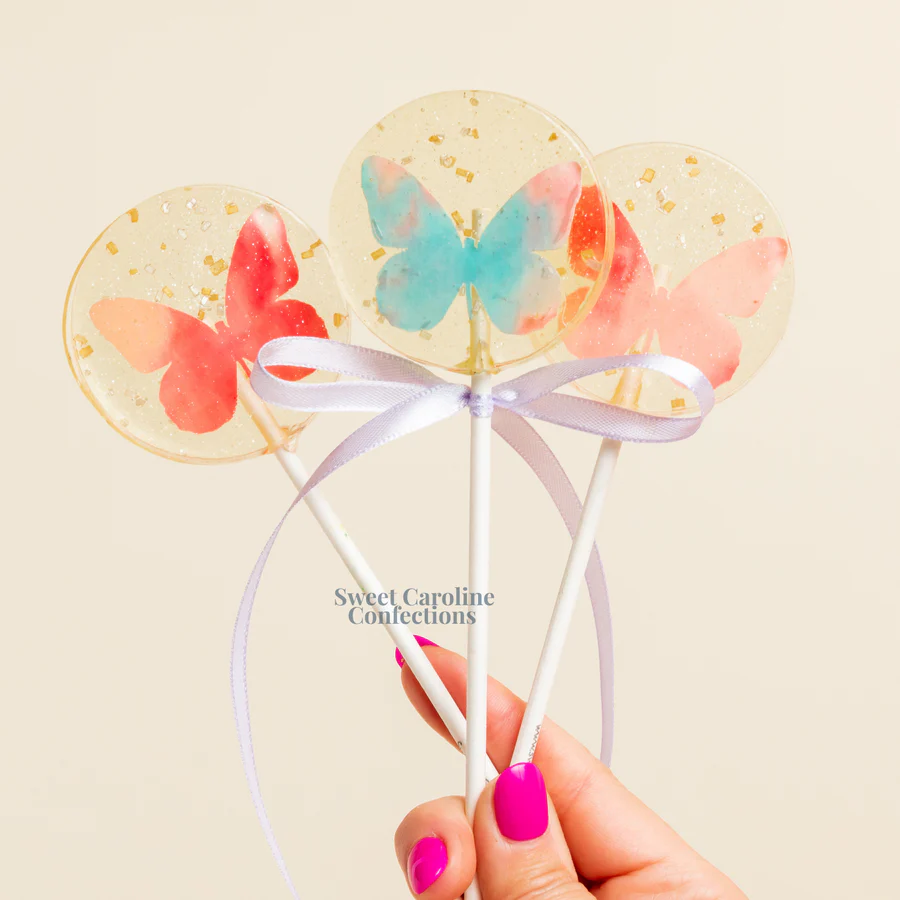 Fondée en 2012 par Andrea Caroline, artiste autodidacte du bonbon, Sweet Caroline Confections est née d’un “sweet accident” lors d’un salon d’artisanat — un succès immédiat qui l’a poussée à délaisser la bijouterie pour se consacrer à la création de sucettes durs décoratives aux paillettes irrésistibles.